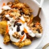 Level up your next Mother’s Day brunch, Easter morning, or typical weekday breakfast with this easy carrot cake overnight French toast casserole! I gotta tell ya, I’m an inner texture-freak, and this morning delight does NOT disappoint.