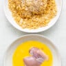 Crack 3 eggs in a large mixing bowl and whisk the eggs together. Dredge the chicken thighs through the egg and then through the cornflake mixture. Be sure each chicken thigh is fully coated in the cornflake mixture.