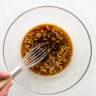 Add all the chicken marinade ingredients to a small bowl, and whisk all the ingredients together until the honey dissolves.